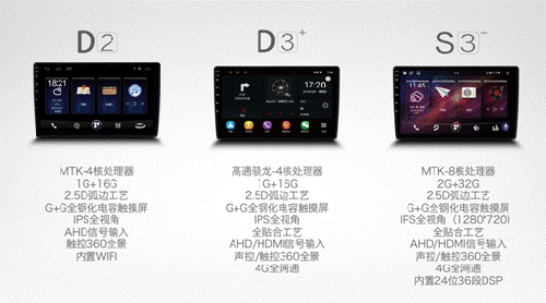 以道可視4G車載影音導(dǎo)航系統(tǒng)為例,為了應(yīng)對市場不同層次消費差異化需求, 產(chǎn)品特別D2、D3+、S3+三款型號,產(chǎn)品均采用了IPS全視角以及G+G全鋼化觸摸屏設(shè)計,為車主提供極致高清畫質(zhì),觸控更靈敏!