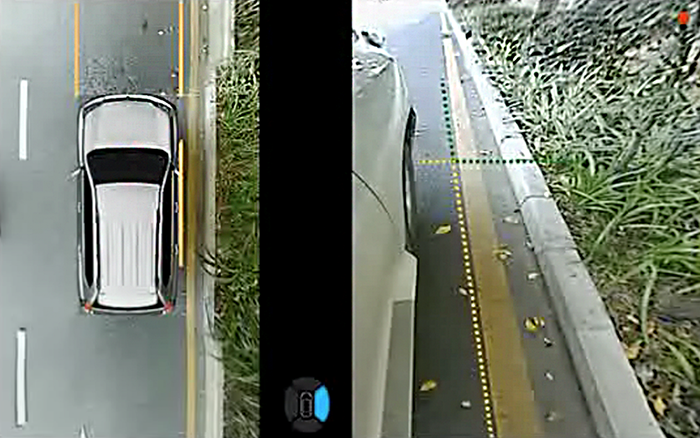 針對這一場景,道可視的“停靠路崖模式”在倒車檔模式下開啟雙閃時,會將車身兩側(cè)(整個車身、前后輪、踏板等)同時顯示,以這種近場垂直的鳥瞰圖顯示方式,配合安全參考線(與車身距離為20CM),有效的解決了停靠路崖時可能對輪胎及輪轂造成刮傷的問題。